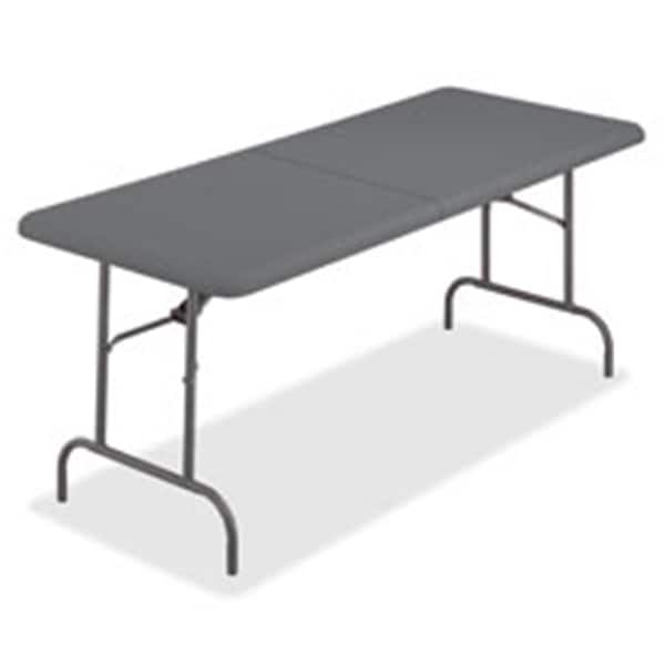 Folding table is made for heavy-duty use indoors or outdoors yet is 30 percent lighter than standard folding tables. 2in tabletop is made of durable blow-molded high-density polyethylene that is dent-resistant and scratch-resistant. Tubular legs are made of heavy-gauge steel with a powder-coat finish. 1in round legs fold into recessed cavities beneath the table. Bifold Folding Table is designed to nest with other IndestrucTable TOO 1200 Series tables when stacking to allow maximum storage capacity. Specifications - Color: Charcoal - Weight: 2.125