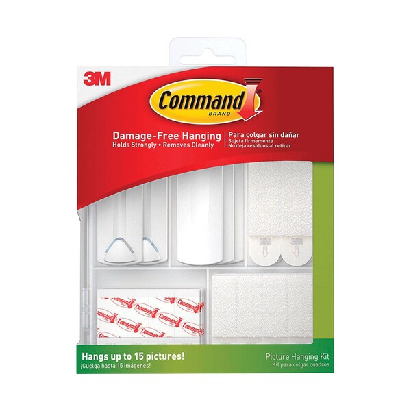 The Command Picture Hanging Kit contains an assortment of Command Picture Hanging Products in a reclosable kit for easy storage and organization. Always have the products you need to quickly and easily hang your décor or even create a custom gallery wall! Best of all, when you are ready to take down or move your pictures, they come off cleanly - no nail holes or sticky residue.