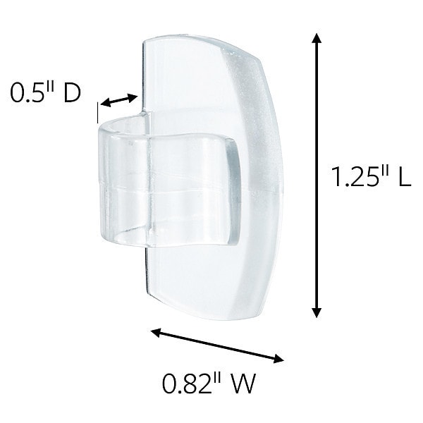 Cord Clip, Fastening Method Adhesive Back, Points per Hook 1, Number of Hooks 4, Basic Hook Material Plastic, Projection 1/2 in, Clear, Depth 1/2 in, Thread Size Not Applicable, Thread Length Not Applicable, Includes (4) Hooks, (5) Strips, Mounting Adhesive Pressure Sensitive Strip, Overall Length 1 1/4 in
