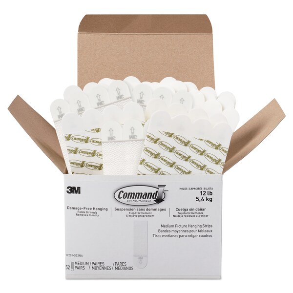 CommandTM Picture Hanging Strips, Value Pack, Removable, 0.75" x 2.75", White, 52 Pairs/Pack