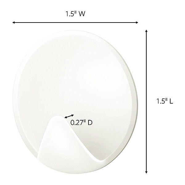 Single Point Hook, Fastening Method Adhesive Back, Points per Hook 1, Number of Hooks 10, Basic Hook Material Plastic, Hook Finish Plastic, Working Load Limit 1/2 lb, Hook Height 1 1/2 in, Hook Base Width 1 1/2 in, Projection 1/4 in, White, Package Quantity 10