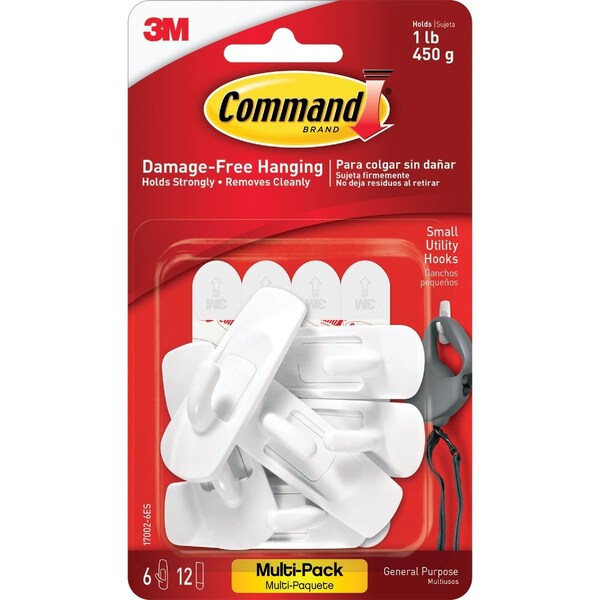 Small Utility Hook Value Pack White 6 Hooks 12 Strips