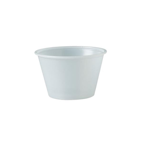Plastic portion cup; 2 oz capacity; Translucent; Sold 2500 per case