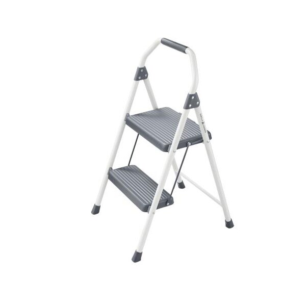 Step ladder; 32 in x 16 3/8 in x 2 1/4 in folded dimensions; 13 in (W) x 8 in (Depth) top platform dimensions; 17 in to top step; 2-step; ANSI/OSHA approved; 225 lb weight capacity