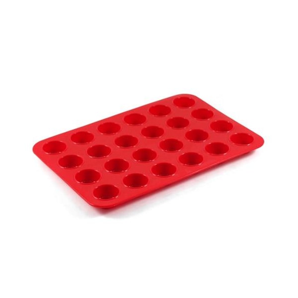 Silicone mini muffin pan; 13 1/2 in (L) x 9 1/4 in (W) x 3/4 in (H); 1 1/2 in (Diameter) x 3/4 in (H) cup size ; Heat resistant up to 500 degrees