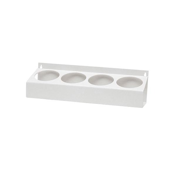 Spray bottle holder; 16 1/2 in (L) x 4.13 in (W) x 4.9 in (H); 3 1/2 in (Diam, hole); Durable ABS construction; Holds 4 bottles; Dishwasher and sanitizer safe; Includes universal mounting kit; Removable