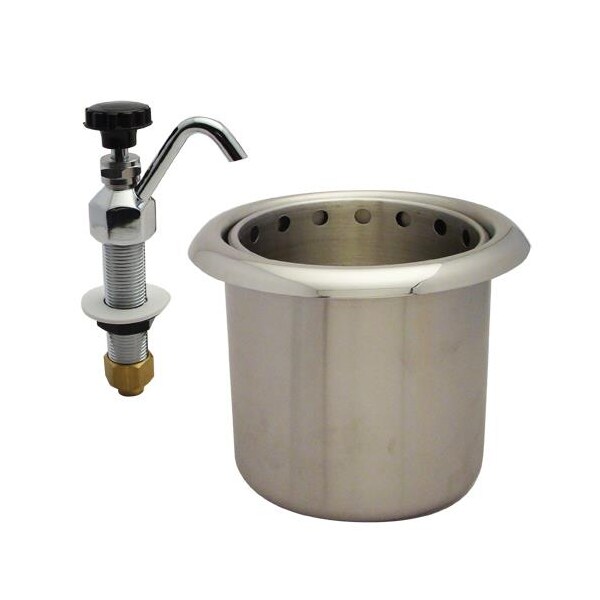 Dipper well; 6 in (Diameter) x 5 3/4 in (H); Fits 6" hole; 1 1/2" pipe size drain; Stainless steel inner and outer can; Faucet has 2" spout and 1 1/2" pipe