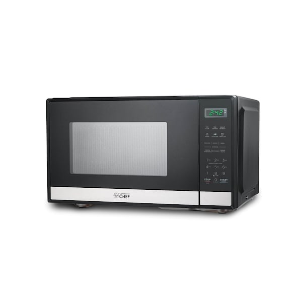 Heat and re-heat your favorite foods and beverages with this outstanding COMMERCIAL CHEF microwave oven countertop. With an impressive capacity of 0.9 cubic feet, this microwave oven 900 watt ensures you can grab and go with delicious meals. Our fantastic microwave 18.9 14.6 10.7 will fit easily on kitchen countertops in homes, apartments, RVs, dorms, and more. Weighing only 27.6 lbs., you can transport this portable microwave anywhere so heated food and drink is within reach. This small microwave oven has impressive power levels such as Time Cook, Time Defrost, Weight Defrost, & Power. Preset Menu Options include Popcorn, Potato, Pizza, Frozen Vegetable, Beverage, & Dinner Plate. Also included on the digital display is Clock & Kitchen Timer. Our small countertop microwave will heat from as little as 30 seconds to as long as you desire! Additional features include a stylish and convenient pull handle, 900 watts of power, a turntable that guarantees even heating, child safety lock, yellow & green LED lighting, touch controls, and sleek plastic front with black housing. What's not to love about this COMMERCIAL CHEF microwave 900 watt countertop? Its reliable heating ability, impressive functions & settings will have you heating and re-heating throughout your busy day!