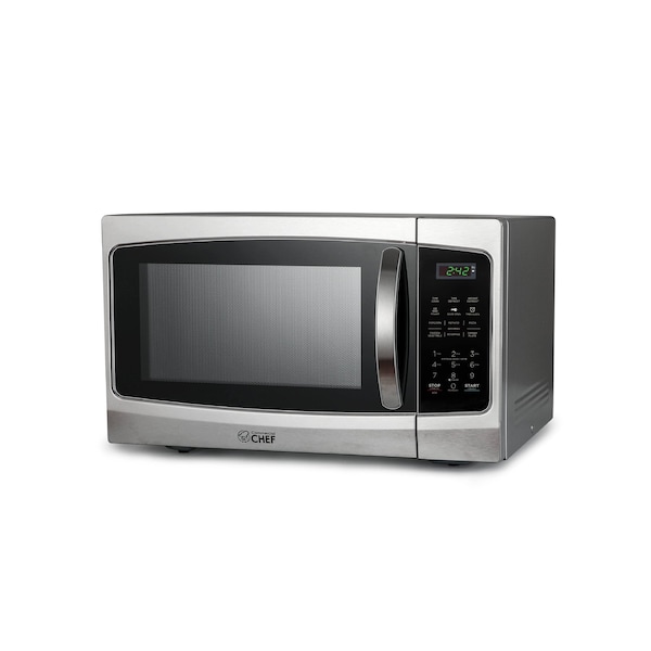 Heat and re-heat your favorite foods and beverages with this outstanding COMMERCIAL CHEF microwave oven countertop. With an impressive capacity of 1.3 cubic feet, this 1000 watt microwave oven ensures you can grab and go with delicious meals. Our fantastic microwave 20.4 x 16.7 x 12.4 will fit easily on kitchen countertops in homes, apartments, RVs, dorms, and more. Weighing only 33.5 lbs., you can transport this portable microwave and microwave 1.3 cu ft anywhere so heated food and drink is within reach. This small microwave oven has impressive power levels such as Time Cook, Time Defrost, Weight Defrost, & Power. Preset Menu Options include Popcorn, Potato, Pizza, Frozen Vegetable, Beverage, & Dinner Plate. Also included on the digital display is Clock & Kitchen Timer. Our small countertop microwave and microwave oven 1.3 cubic feet will heat from as little as 30 seconds to as long as you desire! When it comes to microwave ovens 1000 watt, our additional features are superior, including a convenient push button, an efficient turntable that guarantees even heating, child safety lock, yellow & green LED lighting, and sleek plastic front in black housing. What's not to love about this COMMERCIAL CHEF microwave 1000 watt countertop? Its reliable heating ability, impressive functions & settings will have you heating and re-heating throughout your busy day!