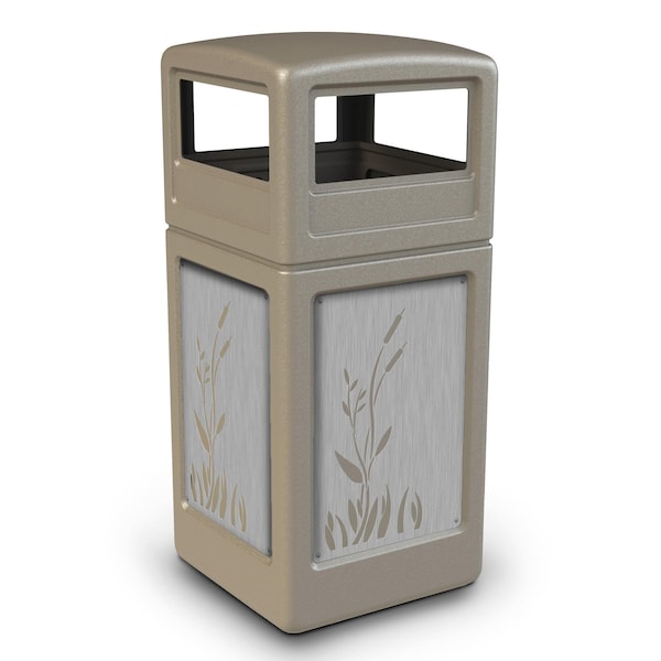 42-gallon w/ CATTAILS Panels, Dome-Lid, Beige