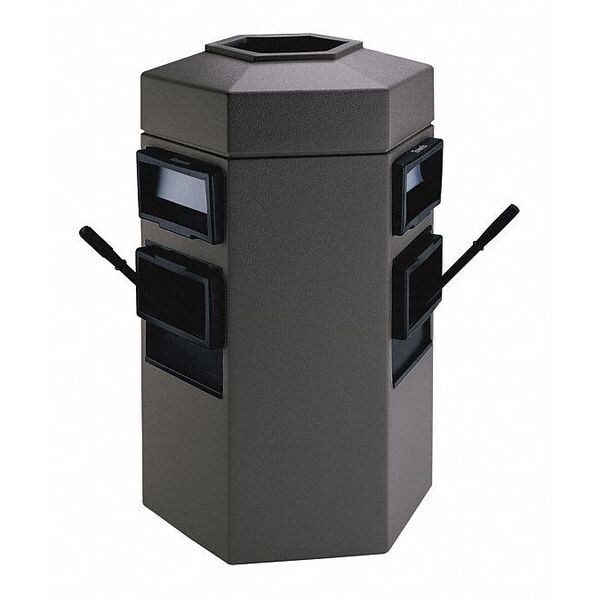 Cleaning Can/Trash Can, Hexagon, Flat with Top Opening, 35 gal, Black, Height 42 in, Width/Diameter 25 in, Depth Not Applicable, Plastic, Polyethylene, Outdoor, Stationary, Lid Included, Snap Fit, Free-Standing