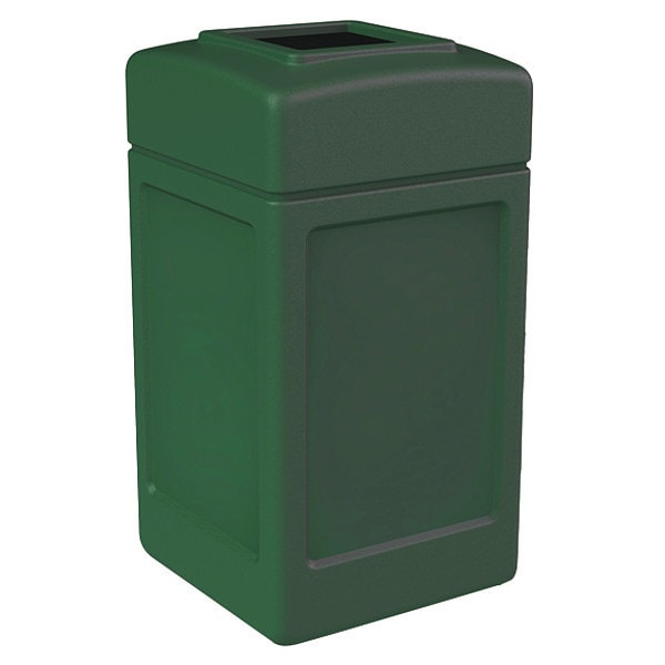 PolyTec 42-Gallon Trash Can: Square, Open-Top Lid, Forest Green