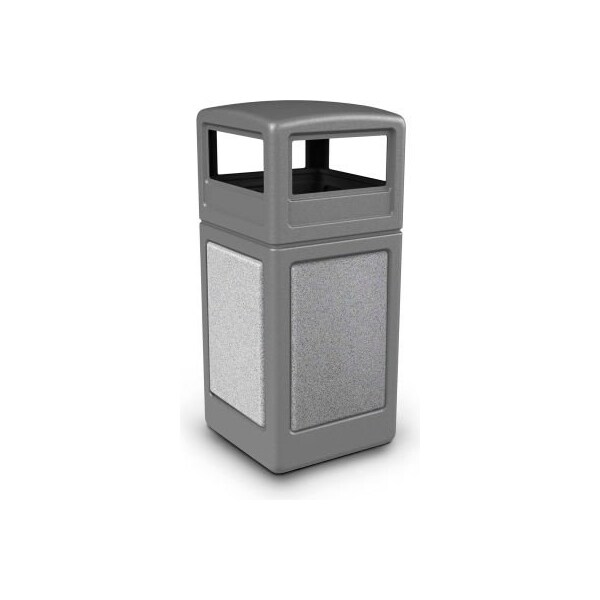 PolyTec Square Waste Container w/Dome Lid - Gray w/Pepper Stone Panels, 42-Gallon