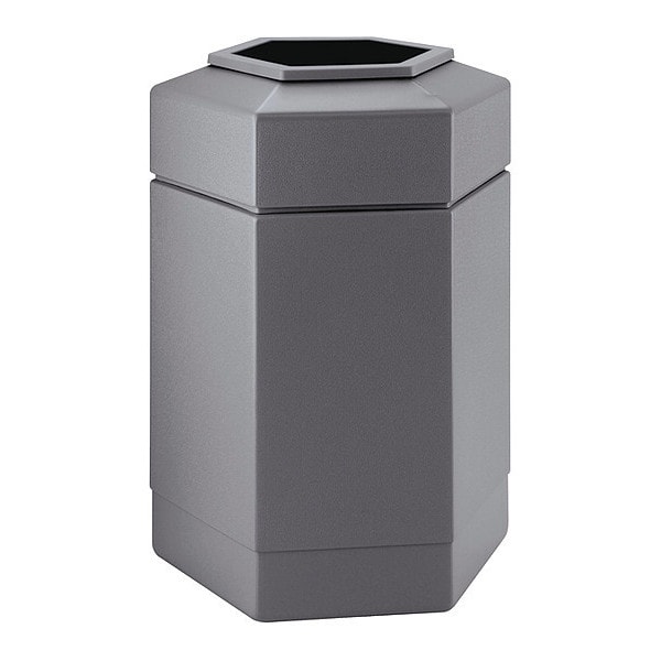 PolyTec Trash Container, 30-Gallon Hex, Open-Top Lid, Gray
