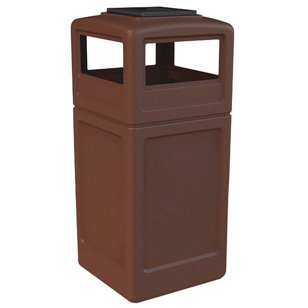 PolyTec Trash Container, 42-Gallon Square, Ashtray Lid, Brown