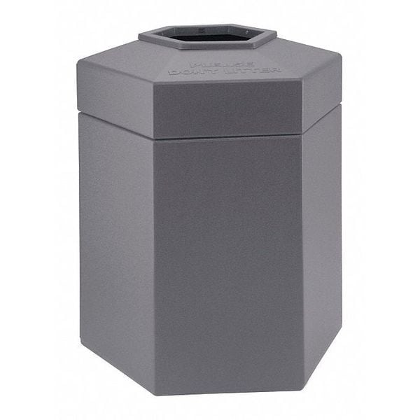 PolyTec Trash Container, Large 45-Gallon Large Hex, Open-Top Lid, Gray