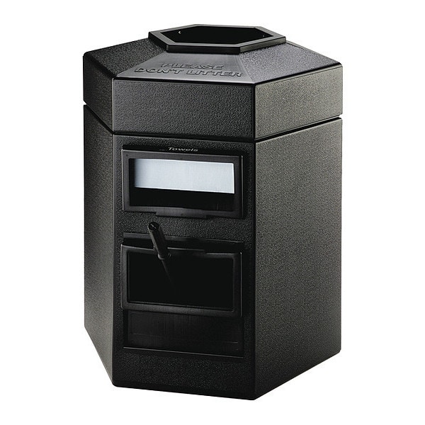 Cleaning Can/Trash Can, Hexagon, Flat with Top Opening, 35 gal, Black, Height 31 in, Width/Diameter 25 in, Depth Not Applicable, Plastic, Polyethylene, Outdoor, Stationary, Lid Included, Snap Fit, Free-Standing