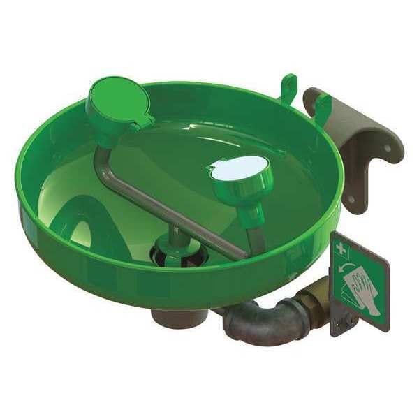 Plumbed Eyewash, Activation Pull Down, Barrier Free Yes, Bowl Style Uncovered, Color Green, Coverage Eyes and Face, Depth 10 in, Height 13 in, Width 5 in, Environment General Purpose, Eyewash Bowl Material Plastic, Hazardous Location Rating Not Rated, Includes Inspection Tag, Identification Sign, Includes Drench Hose No, Includes Foot Pedal No, Inlet Pipe Gender Female, Inlet Pipe Size 1/2 in, Inlet Pipe Thread Type NPT, Pipe Material Chrome-Plated Brass, Mount Type Wall