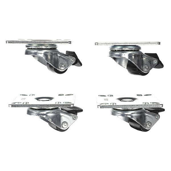 Caster Kit,Med Duty 3-1/2 In. x 3-1/2 In. Pla