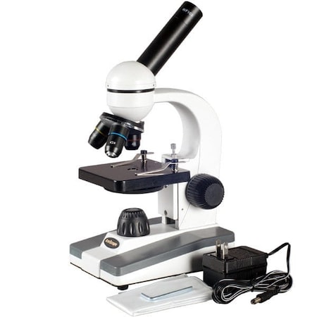 M158 Student Cordless Monocular Compound Microscope 40X-640X w/Metal Frame, Glass Lenses and Coarse
