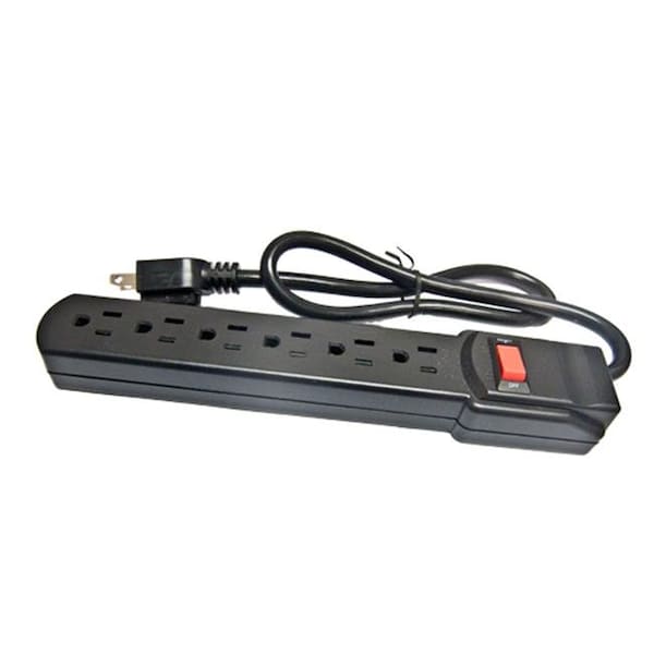 Outlet Strip, Surge, AC Power, 6 ft, Black