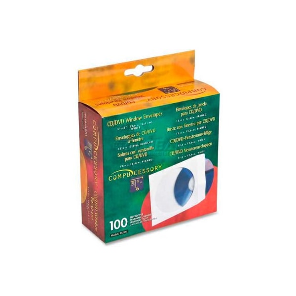 Compucessory cd/dvd window envelopes, 26500, 5" x 5", 100/box, white heavyweight envelopes store and protect your cds/dvds. Clear 4-1/4" diameter window reveals your cd/dvd label. Close ungummed flap by tucking it into the half-circle cut in the back of the envelope.