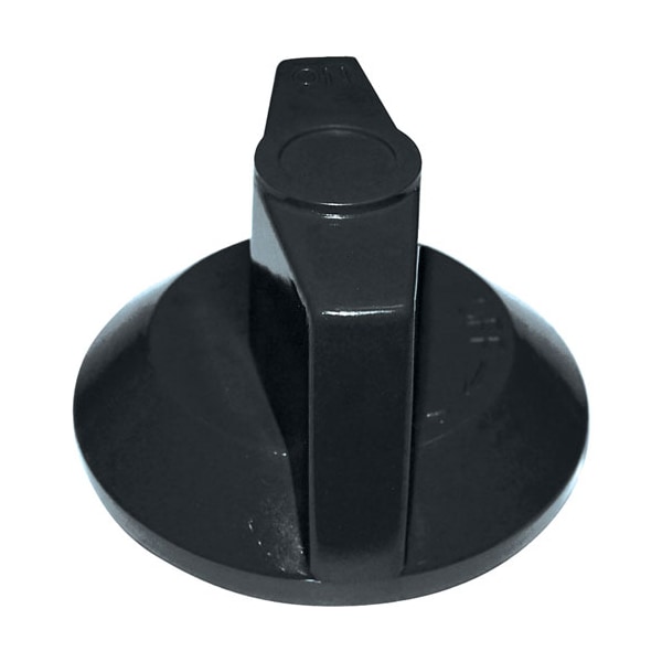 Black Plastic Burner Valve Knob ;[ 2-1/2" Dia ] [ Off-On] [Mount .24" ] ;[Flat Down ] , Set Screw Left,;For Red Knob Use # 22-1568;Wolf Range Burner Valve H730, V-197, # 52-1062;Wolf Range F, Fb, Fk, Fm, Fs, Fv, Gmo, Kf, Kfs;Wolf Broiler Ccb, Fcb, Scb (F & Fs Models.;Hbss, Irb, Rb