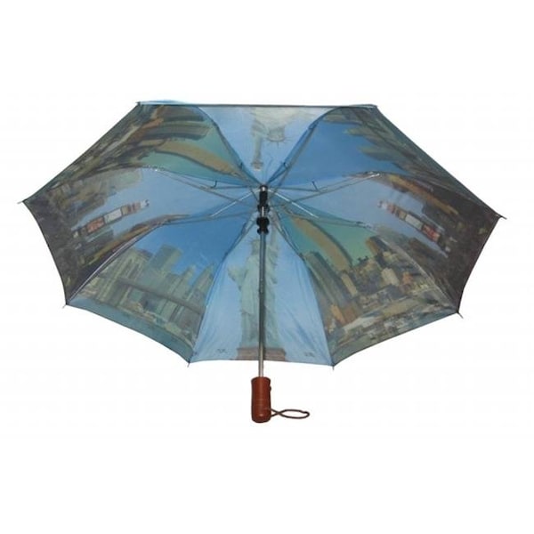 Conch Umbrellas 3899NY 44 in. Automatic Open 3 Fold Compact Umbrella With Ny Sightseeing Design - Navy
