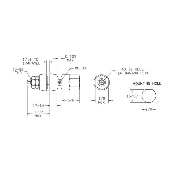 COMM HEX HEAD 5 WAY BNDG PST, GLD PLTD, 1.920, 01-1032-1-0319-1 (Discontinued)