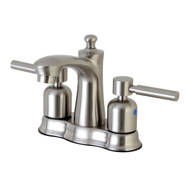 This faucet boasts bold, sleek design with its cylindrical styling. Centerset bathroom faucets are ideal for smaller bathrooms and feature an easy 1 or 3-hole installation. The Concord 4-Inch Centerset Bathroom Faucet with Retail Pop-Up and its featured sturdy brass construction and premium brushed nickel finish are guaranteed to glamorize your home's modern ensemble. Flash the radical brilliance of contemporary trends with this statement piece. A matching finish drain is also included.