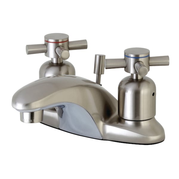 This faucet boasts bold, sleek design with its cylindrical styling. Centerset bathroom faucets are ideal for smaller bathrooms and feature an easy 1 or 3-hole installation. The Concord 4-Inch Centerset Bathroom Faucet with Retail Pop-Up and its featured sturdy brass construction and premium brushed nickel finish are guaranteed to glamorize your home's modern ensemble. Flash the radical brilliance of contemporary trends with this statement piece. A matching finish drain is also included.