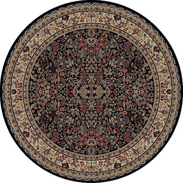 Jewel collection is machine-made in Turkey using 100% heat-set polypropylene. These traditional to contemporary rugs will make a colorful addition to any area. Features -Easy maintenance and ultimate performance -Colorfast for long-lasting beauty -Stain-resistant and soil repellent -Resilient Ecological and Anti Static -Anti Bacterial -Non Flammable -No Dust Fibers Specifications - Color: Black - Style: Traditional/Oriental Rugs - Material: Polypropylene/Olefin - Collection: Jewel - Design: Sarouk - Shape: Round - Weight: 9 lbs - Size: 5 ft. 3 in. - Pile Height: 0.39 - Technique: Woven