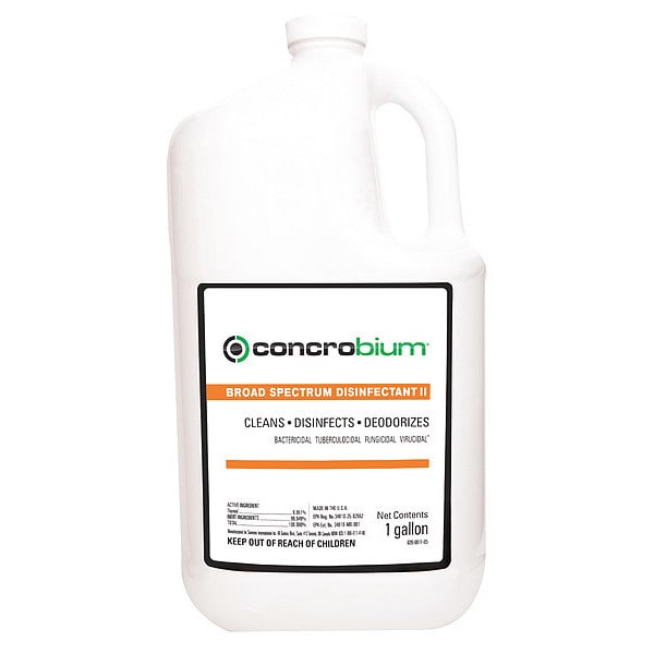 Disinfectant Cleaner, Primary Chemical None, Container Type Jug, Container Size 1 gal, Ready to Use/Concentrated Ready to Use, Recommended Dilution Ready to Use, Fragrance Citrus, Cleaner Form Liquid, Surfaces for Use On Hard Non-Porous, Standards EPA Registered, Wet Contact Time 10 min, Targeted Pathogens Bacteria, Fungi, Germs, Virus, Product Series Concrobium, VOC Content 0 Percent, Flash Point None, Rinse Required Yes, NSF Rating Not Rated, EPA Registered Yes