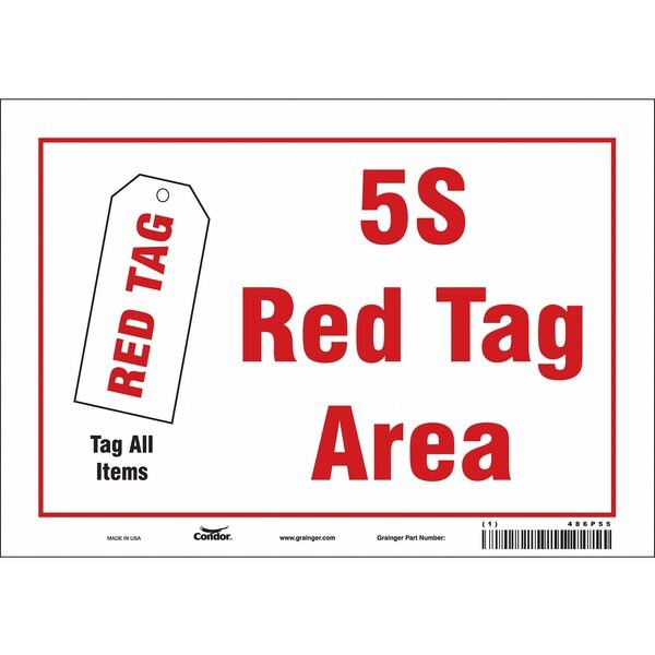 5S RED TAG AREA, 10 in W x 7 in H, Vertical Rectangle, Vinyl, 486P55
