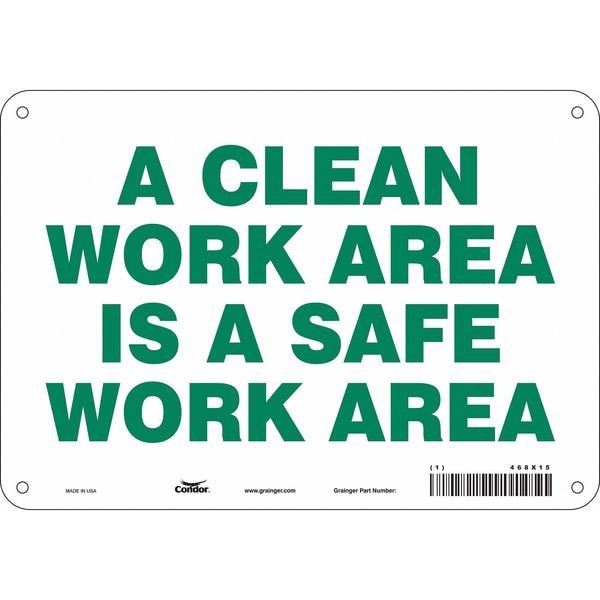 A CLEAN WORK AREA IS A SAFE WORK AREA, 10 in W x 7 in H, Vertical Rectangle, Polyethylene, 468X15