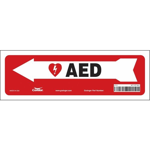 AED, 12 in W x 4 in H, Vertical Rectangle, Vinyl, 471T94