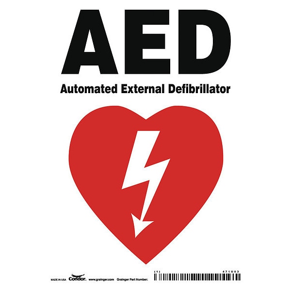 AED Automated External Defibrillator, 5 in W x 7 in H, Vertical Rectangle, Vinyl, 471U03