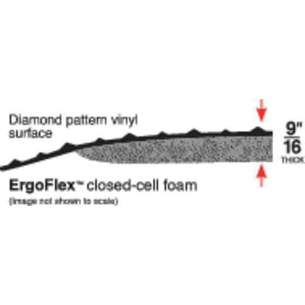 Antifatigue Mat, Anti-Slip Backing No, Number of Border Stripes 0, Resistance Properties Insulation, Tear Resistant, Wear Resistant, X-Ray Detectable No, Width 3 ft, USDA Certified No, Welding Safe No, Washdown Safe No, Series 509 Diamond-Tuff(TM), Thickness 9/16 in, Thermally Insulating Yes, Surface Material Vinyl, Surface Texture Raised Pattern, NSF/ANSI 52 No, Reversible No, Surface Design Diamond Plate, Number of Beveled Edges 4, NFSI High Traction Certified No, Metal Detectable No