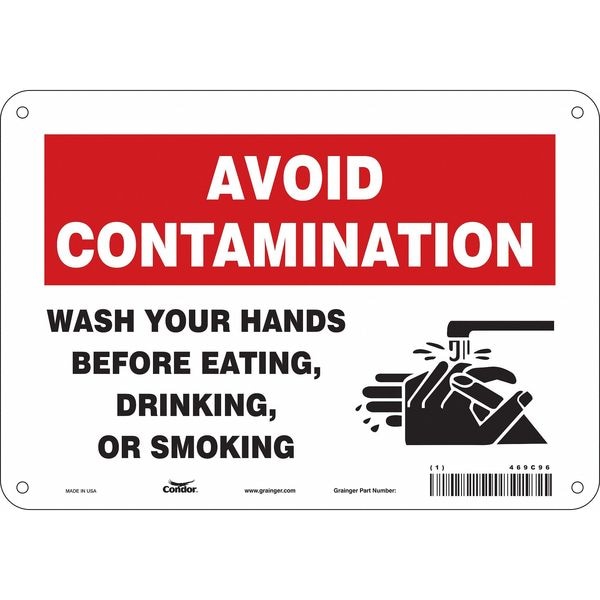 Avoid Contamination, Wash Your Hands Before Eating., 10 in W x 7 in H, Polyethylene, 469C96