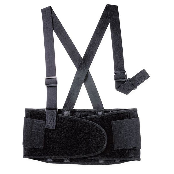 Back Brace w/Stay, Double Hook-and-Loop, 1 1/2 in Detachable Suspenders, Black, Medium