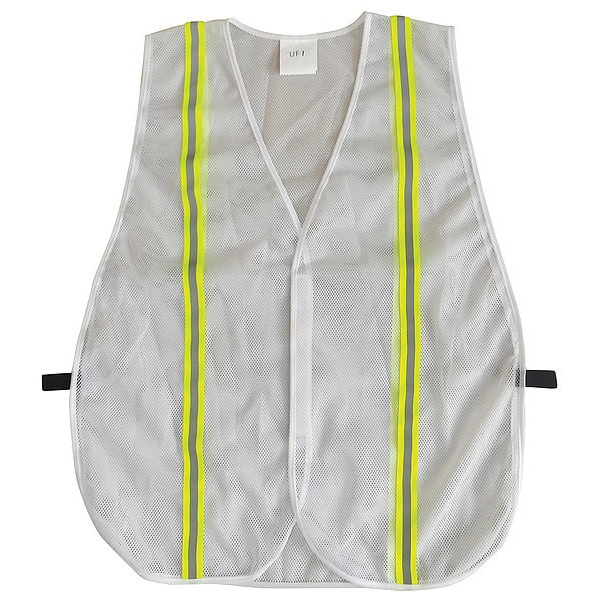 High Visibility Vest, ANSI Class Not Rated, Vest Size S, Traffic Safety Vest Color White, Fits Chest Size 36 in to 52 in, Gender Men's, Stripe Color Silver, Vest Material Polyester Mesh, Vest Closure Type Hook-and-Loop, ATPV Rating Not Rated, Hazard Risk Category (HRC) Not Applicable, Vest Stripe Color Family Silver, Back Stripe Pattern U, Vest Length 29 in, Number of Pockets (Inside) 0, Number of Pockets (Outside) 0, Number of Pockets with Closure 0, Features 360 Degrees Visibility