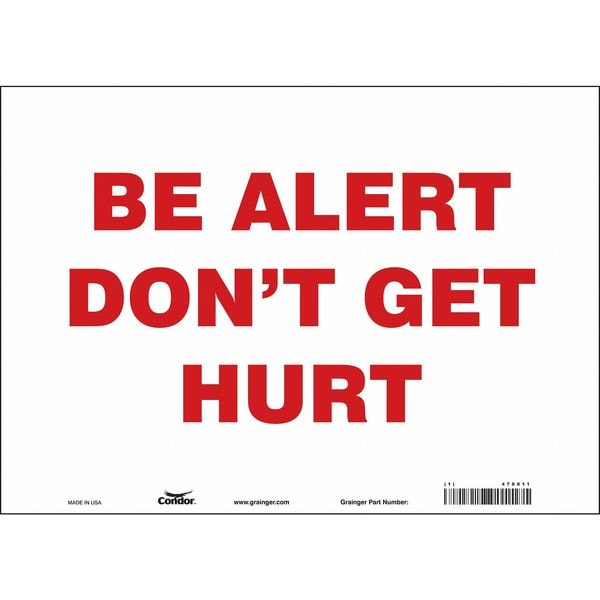 Safety Sign, Horizontal Rectangle, Number of Printed Sides 1, English, Sign Format Other Format, Sign Legend Be Alert Don'T Get Hurt, Sign Legend Background Color White, Sign Legend Style Text