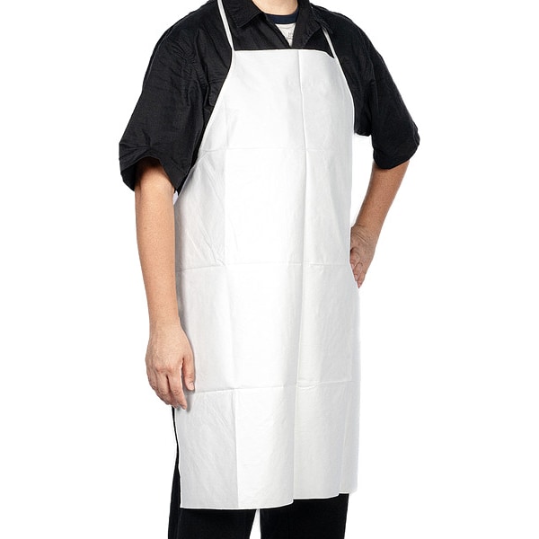 Bib Apron, Anti-Static No, Apron Material Microporous, Apron Type Bib, ATPV Rating Not Applicable, Back Style Open, Breakaway No, Color White, Cuff Style Not Applicable, FDA Compliant Yes, Flame Resistance and Retardance Ratings Not Applicable, Grommet Material Not Applicable, Hazard Risk Category Not Applicable, Hazard Type Non-Hazardous Dry Particulates, Non-Hazardous Liquids, Length Type Knee, Liquid Dispersal Type Splash, Spray, Material Weight 56 g/sq m, Named Size Universal