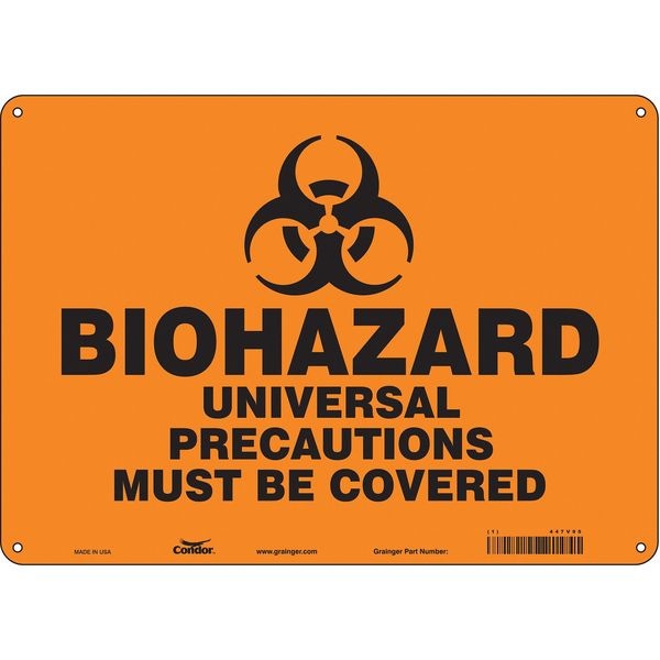 Biohazard Sign, Horizontal Rectangle, Number of Printed Sides 1, English, Sign Format Other Format, Sign Legend Biohazard Universal Precautions Must Be Observed, Sign Legend Background Color Orange, Sign Legend Style Symbol and Text