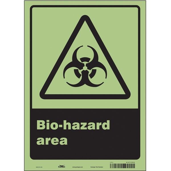 Biohazard Sign, 14 in Height, 10 in Width, Glow Vinyl, Vertical Rectangle, English