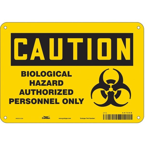 Biohazard Sign, 7 in H, 10 in W, Polyethylene, Vertical Rectangle, English, 447X08
