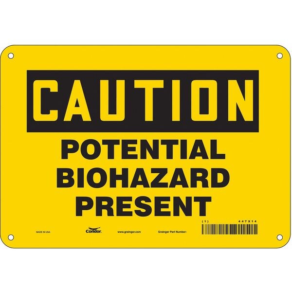 Biohazard Sign, 7 in H, 10 in W, Polyethylene, Vertical Rectangle, English, 447X14
