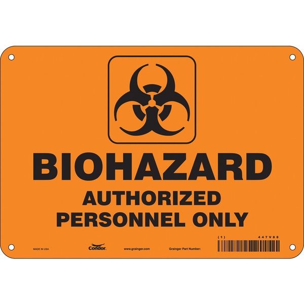 Biohazard Sign, Vertical Rectangle, Number of Printed Sides 1, English, Sign Format Other Format, Sign Legend Biohazard Authorized Personnel Only, Sign Legend Background Color Orange, Sign Legend Style Symbol and Text