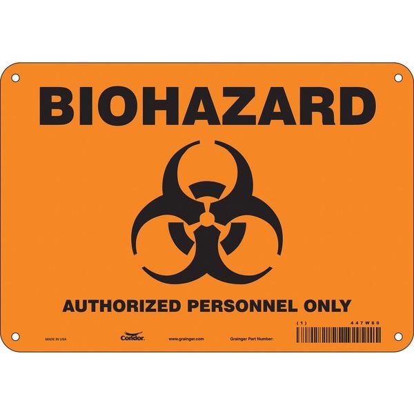 Biohazard Sign, Vertical Rectangle, Number of Printed Sides 1, English, Sign Format Other Format, Sign Legend Biohazard Authorized Personnel Only, Sign Legend Background Color Orange, Sign Legend Style Symbol and Text