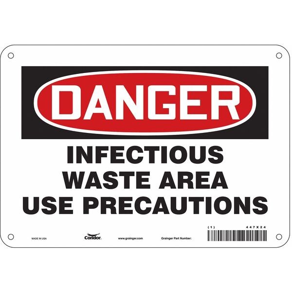 Biohazard Sign, Vertical Rectangle, Number of Printed Sides 1, English, Sign Format Traditional OSHA, Sign Legend Infectious Waste Area Use Precautions, Sign Legend Background Color White, Sign Legend Style Text